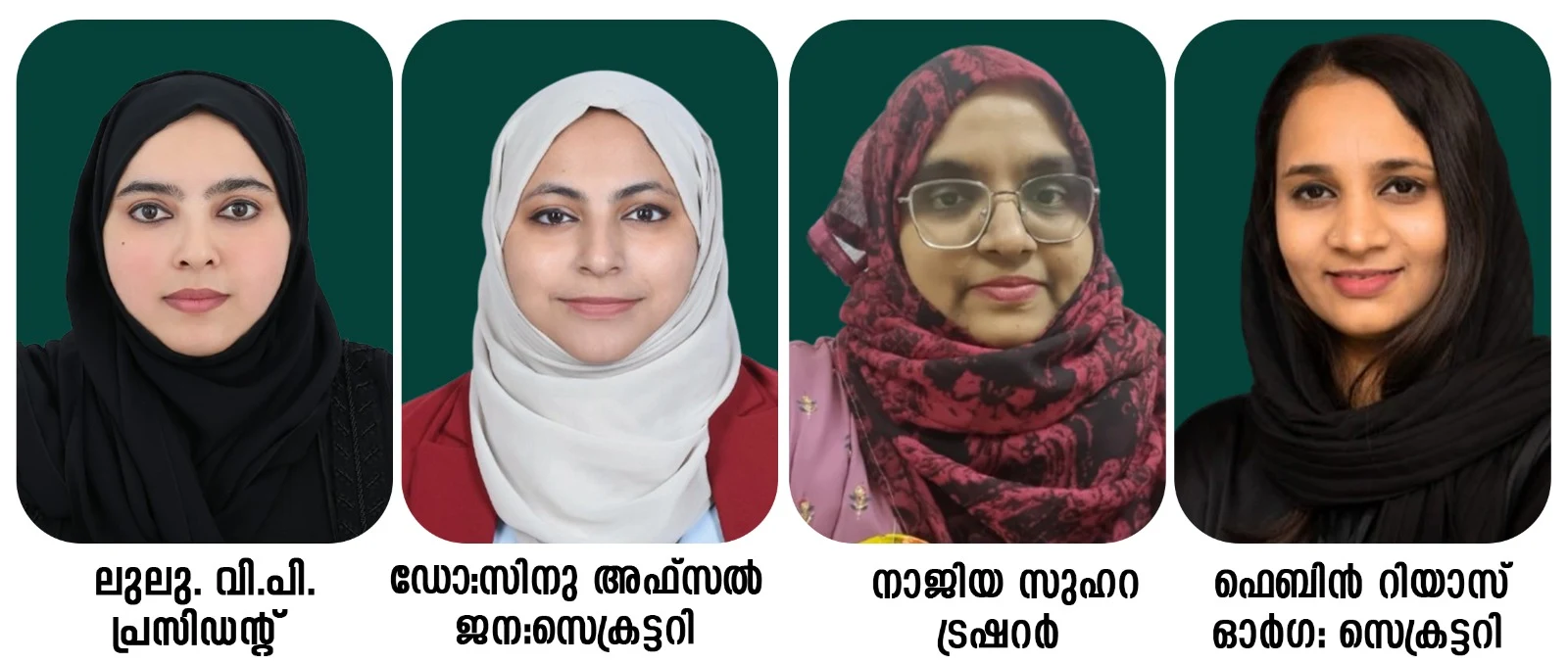 ട്രഷറർ:നാജിയ സുഹറ കോട്ടക്കൽ, ഓർഗനൈസിംഗ് സെക്രട്ടറി: ഫെബിൻ റിയാസ് കുറ്റിപ്പുറം വൈസ് പ്രസിഡന്റ്മാരായി. ഷാദിയ ബീവി കുറ്റിപ്പുറം, ജുസൈന പലാറ വളാഞ്ചേരി റഹമത്ത് മൊയ്തീൻ ഇരിമ്പിളിയം, ഹാഫില പൊന്മള, നൂർജഹാൻ കോട്ടക്കൽ, ഫാസില നിസാർ കോട്ടക്കൽ,