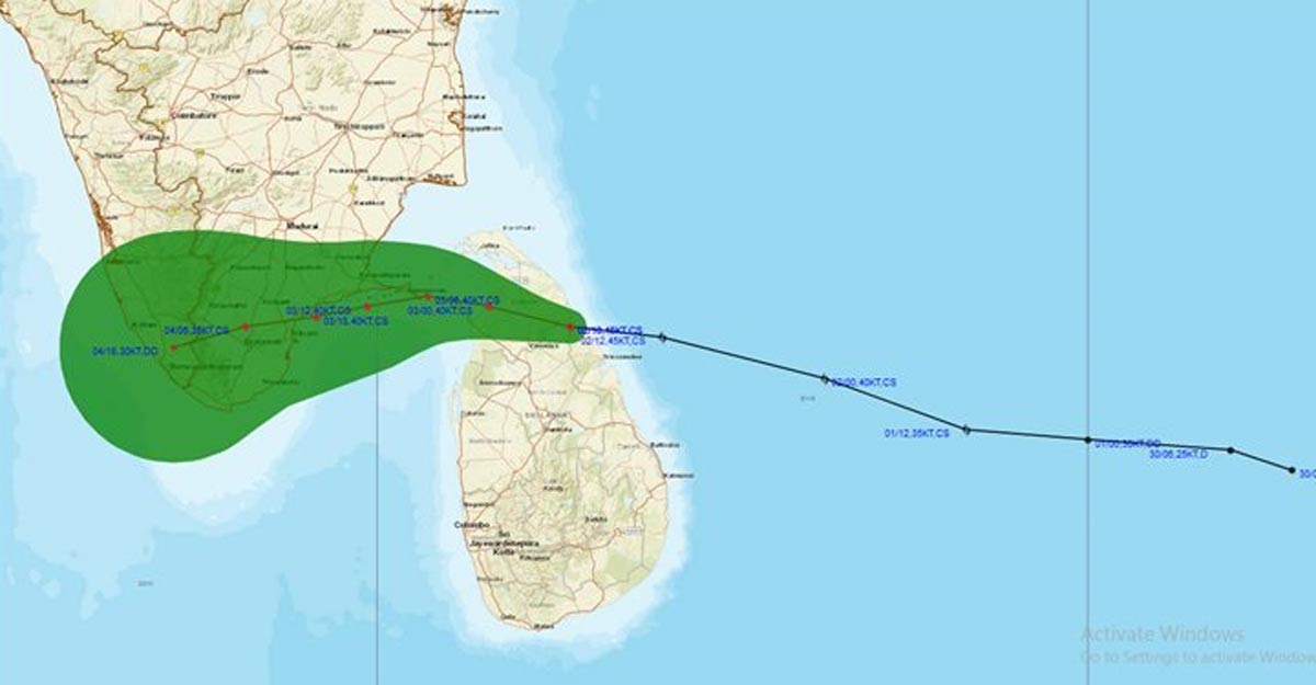 ചുഴലിക്കാറ്റ് ഡിസംബര് മൂന്നിന് ഉച്ചയോടുകൂടിയോ ഡിസംബര് നാലിന് പുലര്ച്ചയോടു കൂടിയോ പാമ്പന് തീരത്തെത്തുമ്പോള് ചുഴലിക്കുള്ളിലെ കാറ്റിന്റെ പരമാവധി വേഗത മണിക്കൂറില് ഏകദേശം 70 മുതല് 80 കിമീ വരെയും ചില അവസരങ്ങളില് 90 കി.മീ. വരെയും ആയിരിക്കുമെന്നാണ് പ്രതീക്ഷിക്കുന്നത്. ഡിസംബര് 3 ന് അര്ദ്ധരാത്രിയോടുകൂടി തമിഴ്നാട് തീരത്തെത്തുമെന്നും പ്രതീക്ഷിക്കുന്നു.