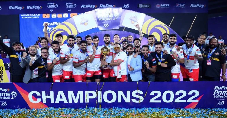 അഹമ്മദാബാദ് ഡിഫന്ഡേഴ്സിനെ നേരിട്ടുള്ള മൂന്ന് സെറ്റുകള്ക്ക് തകര്ത്ത് കൊല്ക്കത്ത തണ്ടര്ബോള്ട്ട്സ് പ്രൈം വോളിബോള് ലീഗ് ചാമ്ബ്യന്മാരായി.