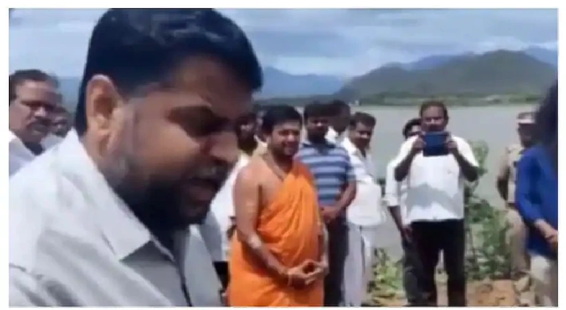 തടാകക്കരയിലെ നിര്മാണ പ്രവര്ത്തനങ്ങള് തുടങ്ങുന്നതിന് മുമ്ബുള്ള ചടങ്ങിനെത്തിയതായിരുന്നു മന്ത്രി. പൊതുമരാമത്ത് വകുപ്പിന്റെ ചുമതലയിലുള്ള നിര്മാണ പദ്ധതി തുടങ്ങുന്നതിന് മുമ്ബ് പൂജാദ്രവ്യങ്ങളും ഭൂമി പൂജ നടത്താന് ഹിന്ദു പുരോഹിതനേയും എത്തിച്ചിരുന്നു.